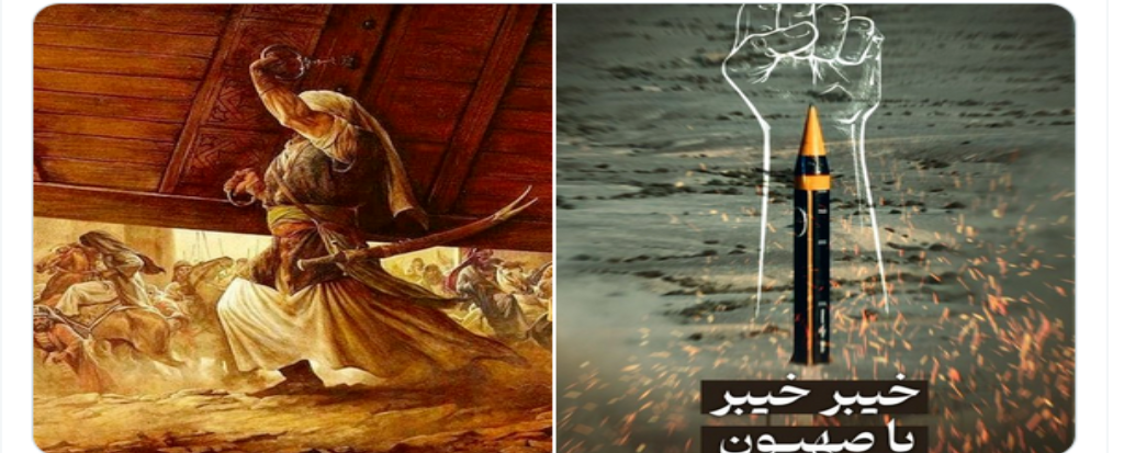 The phrase, used in both Arabic and Farsi, translates to “Khaybar, Khaybar, oh Jews”. This religious chant invokes the 7th-century Battle of Khaybar (located in modern day Saudi Arabia), where Muslims slaughtered and expelled Jewish communities. It is often used in antisemitic discourse to call for hostility against Jews, weaponizing historical violence as a threat. Additionally, it’s important to note that this phrase generally is revived during times of escalation with Iran, per CyberWell’s analysis.