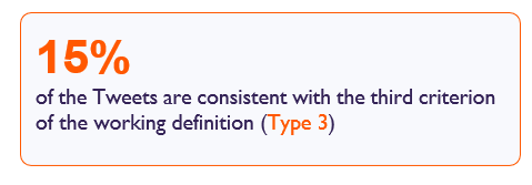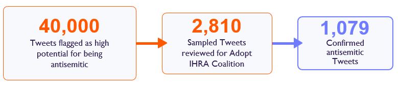 The specific dataset cited in the call for Twitter to adopt the IHRA working definition examined antisemitic content published on Twitter dating back to January 2020 through September 2022 in English and Arabic. For the relevant test period, the specialized dictionary flagged nearly 40,000 Tweets that had a high likelihood of being consistent with one of the eleven criteria of Jew- hatred laid out in the working definition. CyberWell’s analysts reviewed a sample of 2,810 Tweets over the test period and confirmed 1,079 antisemitic Tweets. Flagged antisemitic Tweets were also reviewed to determine whether they complied with Twitter’s Rules & Policies, and if not, which specific policy section was violated. This innovative process is unique to CyberWell, combining antisemitism monitoring with compliance to bridge the gap between digital policy and platform-implementation rules by generating data on specific policy failures.