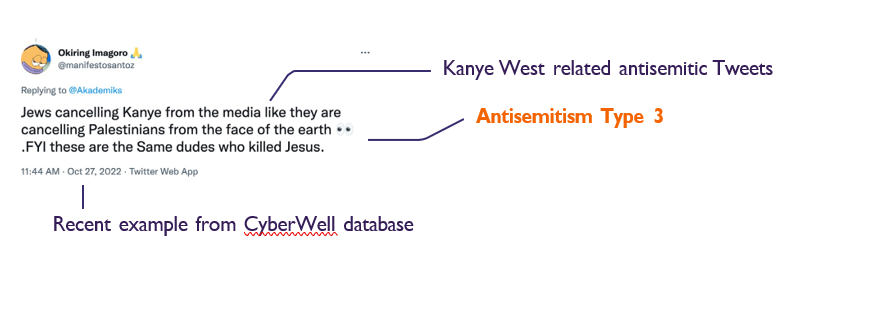 But, what does that mean practically? How do you translate the IHRA working definition into hate speech compliance on a major social media platform? As an addendum to the Adopt IHRA Coalition’s efforts, we put together this brief methodology and data insights report to shed more light on the details of what CyberWell’s initial monitoring of Twitter revealed about the state of antisemitism on the platform and the overarching hate speech policy gaps.
