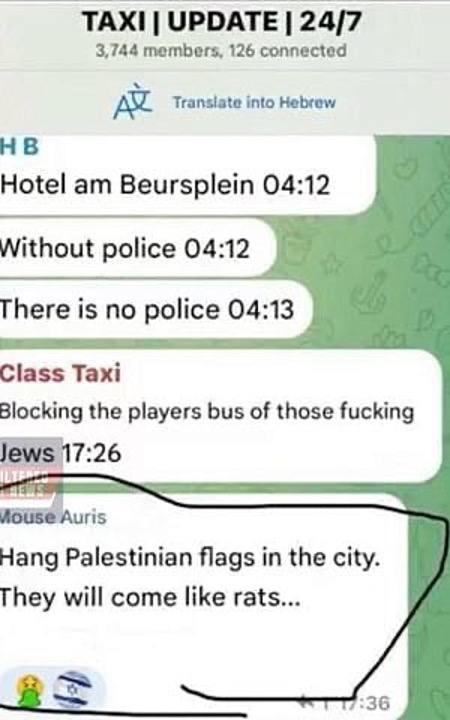 However, during the days leading up to the match – while Israeli fans stayed in Amsterdam – digital evidence indicates that the attacks in Amsterdam were preceded by planned coordination, with multiple reports indicating that much of the organization occurred on Telegram or WhatsApp, as seen in the images below: